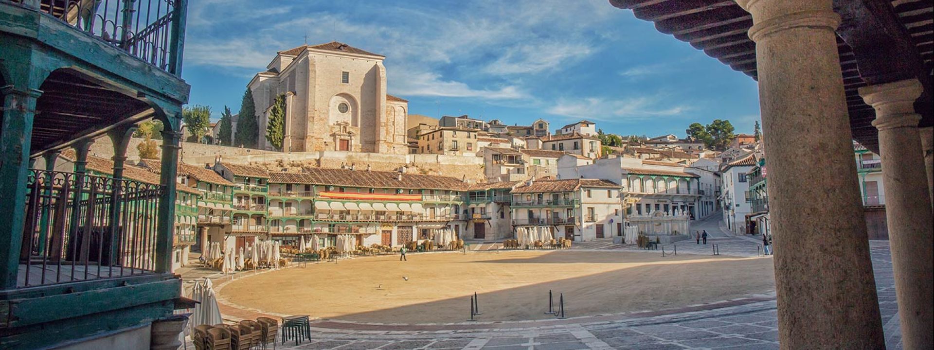 Chinchón, cuyo origen podría venir de la palabra latina «circum” e que significa baja latinidad, es un pueblo situado a 45 km al sureste de Madrid. Es famoso por su plaza donde todavía se celebran corridas de toros. Chinchón es lugar de tapeos con numerosos bares, restaurantes y mesones donde los madrileños pasan los días festivos. Perteneció al «sesmo” de Segovia hasta 1834 año en que pasó a la provincia de Madrid. Tuvo un famoso castillo del SXV ahora en ruinas de la Condesa de Chinchón, que fue pintada por Goya, obra que se encuentra en el museo del Prado. Las compras típicas son el anís de Chinchón, los ajos y la artesanía del esparto.