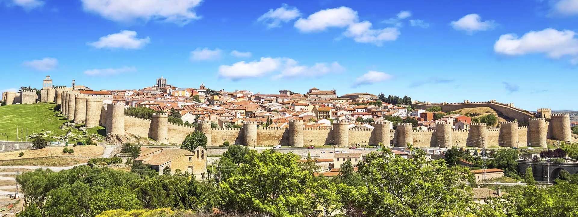 Atalaya de Castilla, situada a 1.100 m. sobre el nivel del mar a 110 km al noroeste de Madrid, y declarada Patrimonio de la Humanidad de 1985. «Ávila de los Caballeros», así llamada por haber tomado parte sus caballeros en numerosas batallas de la Reconquista del territorio castellano, una de las más